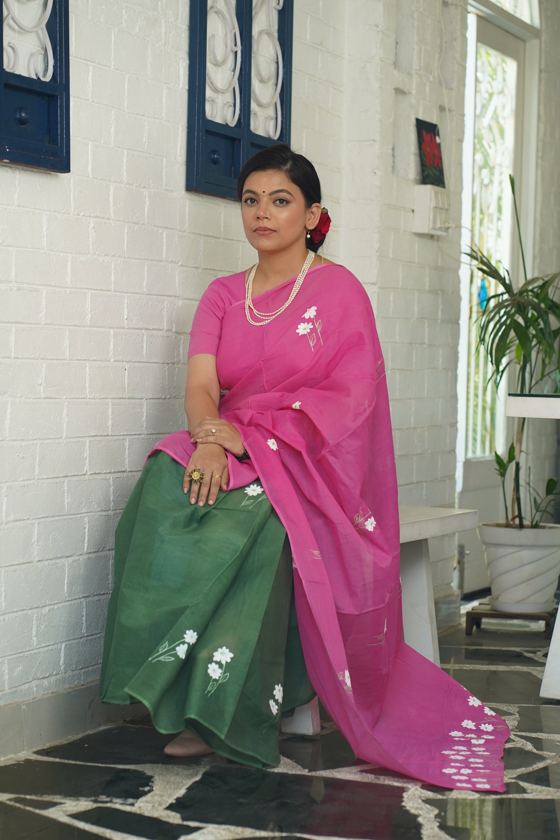 every stroke, every shade, is delicately brushed by hand, transforming pure fabric into a living canvas. inspired by nature, folklore, and tradition, these sarees carry a soulful charm that machines can never recreate. draping one is not just about wearing a saree – it’s about carrying a story, an artist’s imagination, and a legacy of indian craftsmanship.